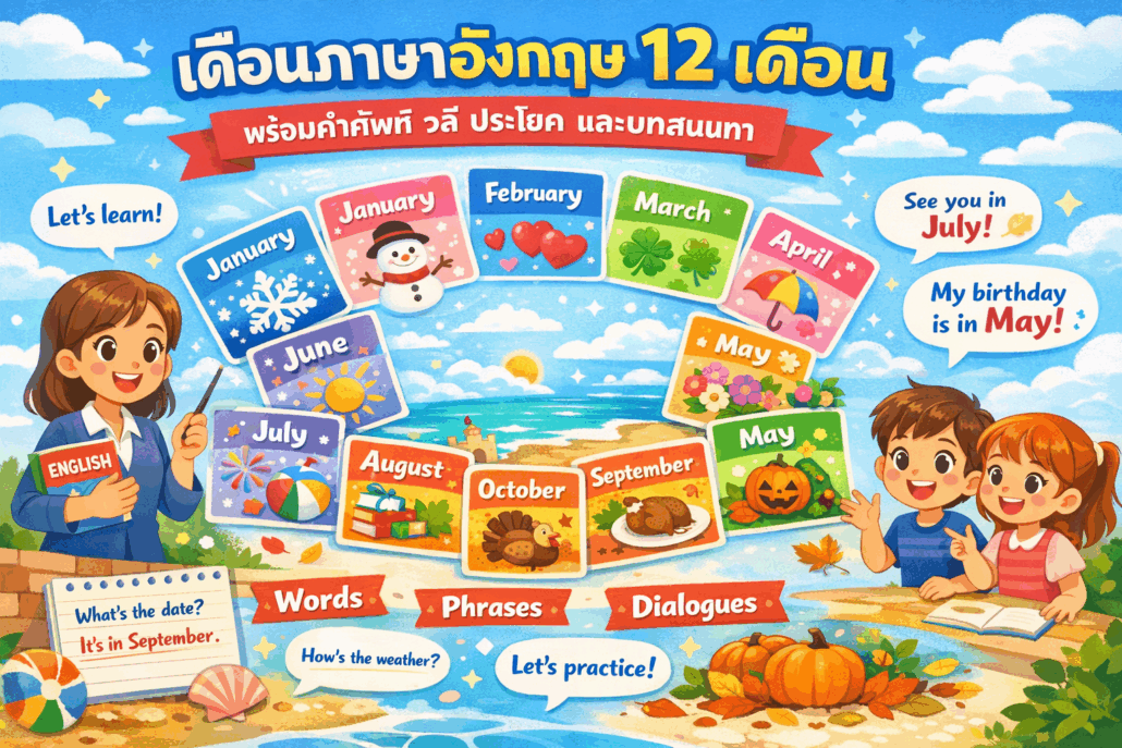ในบทความนี้ คุณจะได้เรียนรู้ เดือนภาษาอังกฤษทั้ง 12 เดือน พร้อมคำอ่านภาษาไทย คำศัพท์ที่ใช้บ่อย วลีและประโยคตัวอย่างที่พบได้จริงในชีวิตประจำวัน รวมถึงบทสนทนาสั้น ๆ ที่ช่วยฝึกการฟังและการพูดอย่างเป็นธรรมชาติ เนื้อหาทั้งหมดเรียบเรียงจากระดับง่ายไปยาก ใช้ภาษาที่เข้าใจง่าย เหมาะกับผู้เรียนระดับ A1 และเด็กประถมโดยเฉพาะ นอกจากนี้ยังสามารถนำไปประยุกต์ใช้เป็นสื่อการสอน ใบงาน หรือบทเรียนสำหรับคลิปวิดีโอได้อีกด้วย หากคุณกำลังมองหาบทเรียนเรื่องเดือนภาษาอังกฤษที่ “ครบ จบ และใช้งานได้จริง” บทความนี้จะช่วยให้คุณเรียนรู้และจดจำได้อย่างมั่นใจมากยิ่งขึ้นครับ