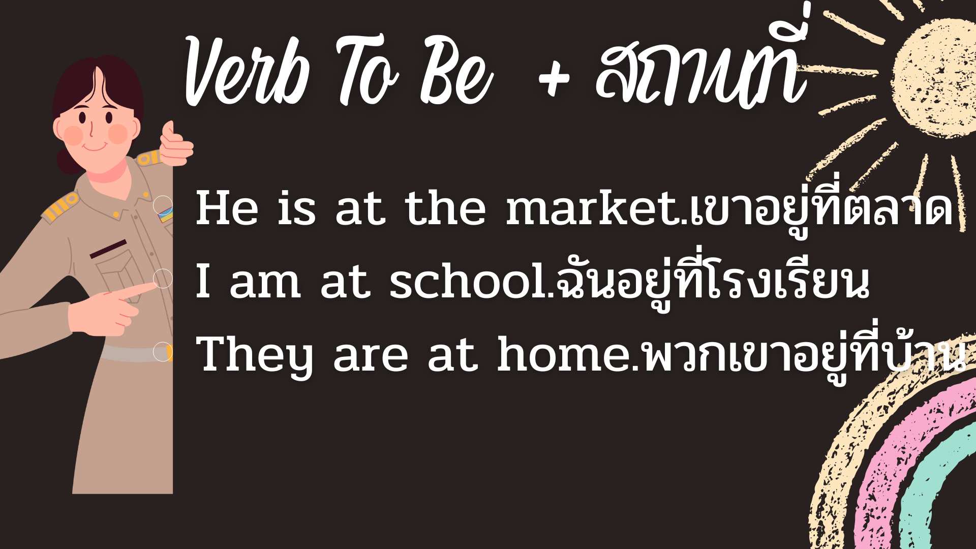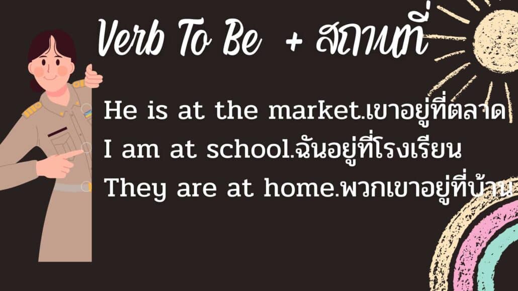 การใช้ Verb to Be: is, am, are ตามด้วยสถานที่