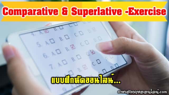 ลองมาทำแบบทดสอบว่าด้วยเรื่อง การเปรียบเทียบ Comparative & Superlative ซึ่งค่อนข้างจะมีรายละเอียดพอสมควร ก็ขอให้นักเรียนค่อยๆ ศึกษาเอา และหมั่นทบทวนหลายๆ รอบนะครับ เพื่อให้ซึมเข้าสมองทีละน้อย ถ้าใครพร้อมแล้วก็ลงมือทำแบบทดสอบได้เลยครับ แบบฝึกหัด Comparative & Superlative Comparative & Superlative – Exercise : คลิกเลือกข้อที่ถูกต้อง จำนวนข้อสอบ 15 ข้อ เกณฑ์ผ่าน 12/15 ขึ้นไป