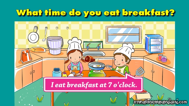 บทสนทนาภาษาอังกฤษฉบับง่ายๆ ตอน What time do you eat breakfast? บทสนทนาในตอนนี้เป็นการสนทนาเพื่อถามว่า คุณกินอาหารตอนเช้ากี่โมง บทสนทนาภาษาอังกฤษ What time do you eat breakfast? A: What time do you eat breakfast? ว็อท ไทม ดุ ยุ อีท เบร็คเฟิสท คุณ กิน อาหารเช้า กี่โมง B: I eat breakfast at 7 o’clock. ไอ อีท เบร็คเฟิสท เอิท เซ็ฝเวิน เออะคล็อค ฉัน กิน อาหารเช้า เวลา 7 นาฬิกา B: What […]