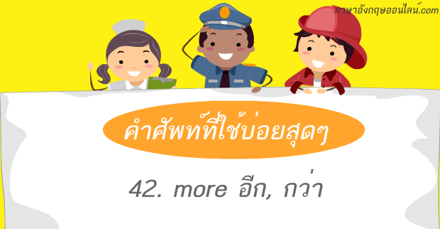 อ่านว่า/ mɔː / มอ ชนิดของคำ determiner, pronoun, adverb แปลว่า อีก , กว่า Do you want some more water? ดู ยู ว็อนท ซัม มอ วอเท๊อะ คุณ ต้องการ น้ำ อีก ไหม I need more money? ไอ นีด มอ มั๊นนิ ฉัน ต้องการ เงิน อีก This car is much more expensive. ดิส คา อิส มัช มอ อิกซเป็นซิฝ รถยนต์ คันนี้ […]