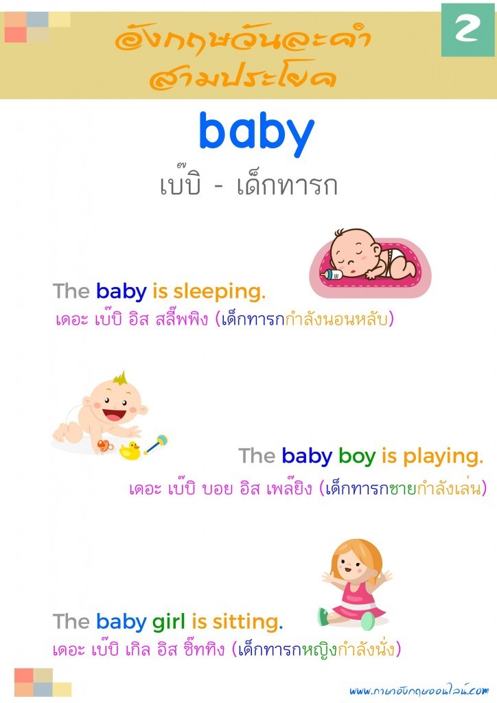 ภาษาอังกฤษวันละคำ กับตัวอย่างสามประโยคประจำวันนี้เสนอคำว่า baby แปลว่า เด็กทารก