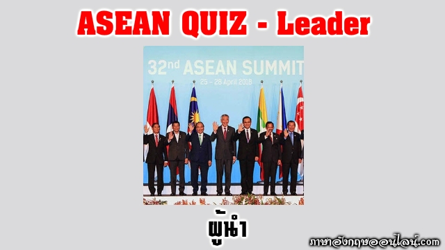 ASEAN QUIZ – Leaders ตอบปัญหาอาเซียน ประลองความรู้เรื่อง “ผู้นำของประเทศในอาเซียน” เป็นแบบทดสอบความรู้ในระดับพื้นฐานเกี่ยวกับข้อมูลต่างๆของอาเซียนครับ พร้อมแล้วมาตะลุยกันได้เลย ASEAN Quiz : ผู้นำ → มือถือคลิกทำแบบทดสอบตรงนี้